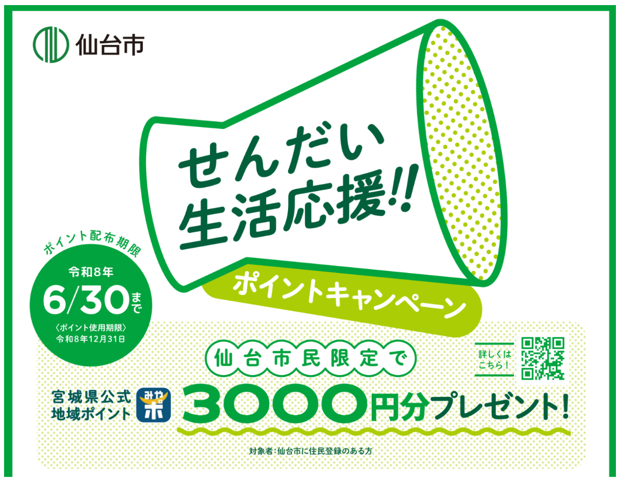 A few weeks ago I saw on the local news that Sendai City was starting to give out points to help with the cost of living (and also to get people to sign up for the Sendai City information app).