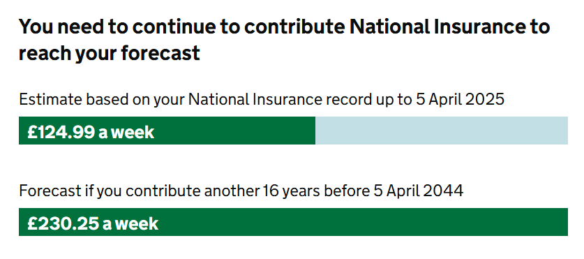 I am still waiting for HMRC to credit my account with the three years I back paid in late 2024, but assuming they do so eventually that just leaves me another 13 years to pay to get a full pension.